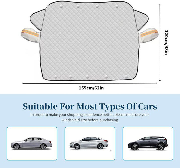 Answer 2: Made from high-quality 600D Oxford fabric, this cover is durable and waterproof, providing excellent protection against heavy snow, frost, and slushy rain. It's built to withstand harsh winter conditions, ensuring your vehicle's windshield stays clear and functional.